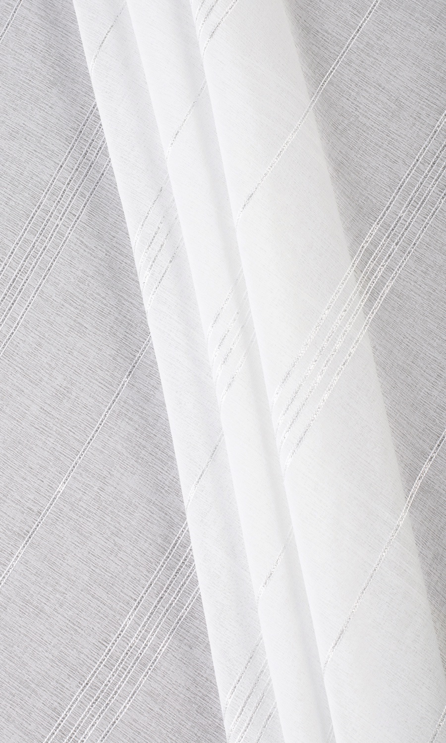 A self-patterned white sheer that makes even a simple sophistication look extraordinary with its vertical stripes. This gossamer elegance softens the space and paints the home in a dreamlike beauty of diffused light. Welcome light and ensure privacy with this feast of rich texture, subtle pattern and casual charm.