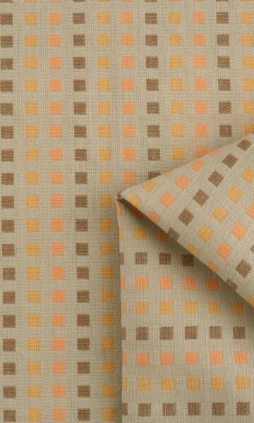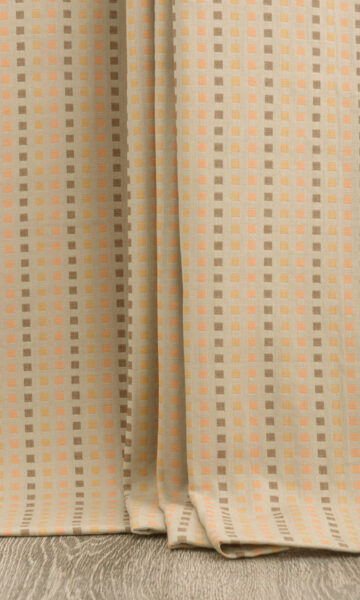 Part of our swoon-worthy cotton collection, Yamini Malawi features a geometrical pattern that is simple yet effective in almost any decor setting. With a soft tactile body of grey-beige with accents of orange, brown and yellow, it feels like a modern take on cotton, so cozy and full of flavor. This medium weight cotton falls beautifully and never fails to impress – no matter what the heading style – from the fullness of pinch pleats to the minimalist look of an eyelet heading.