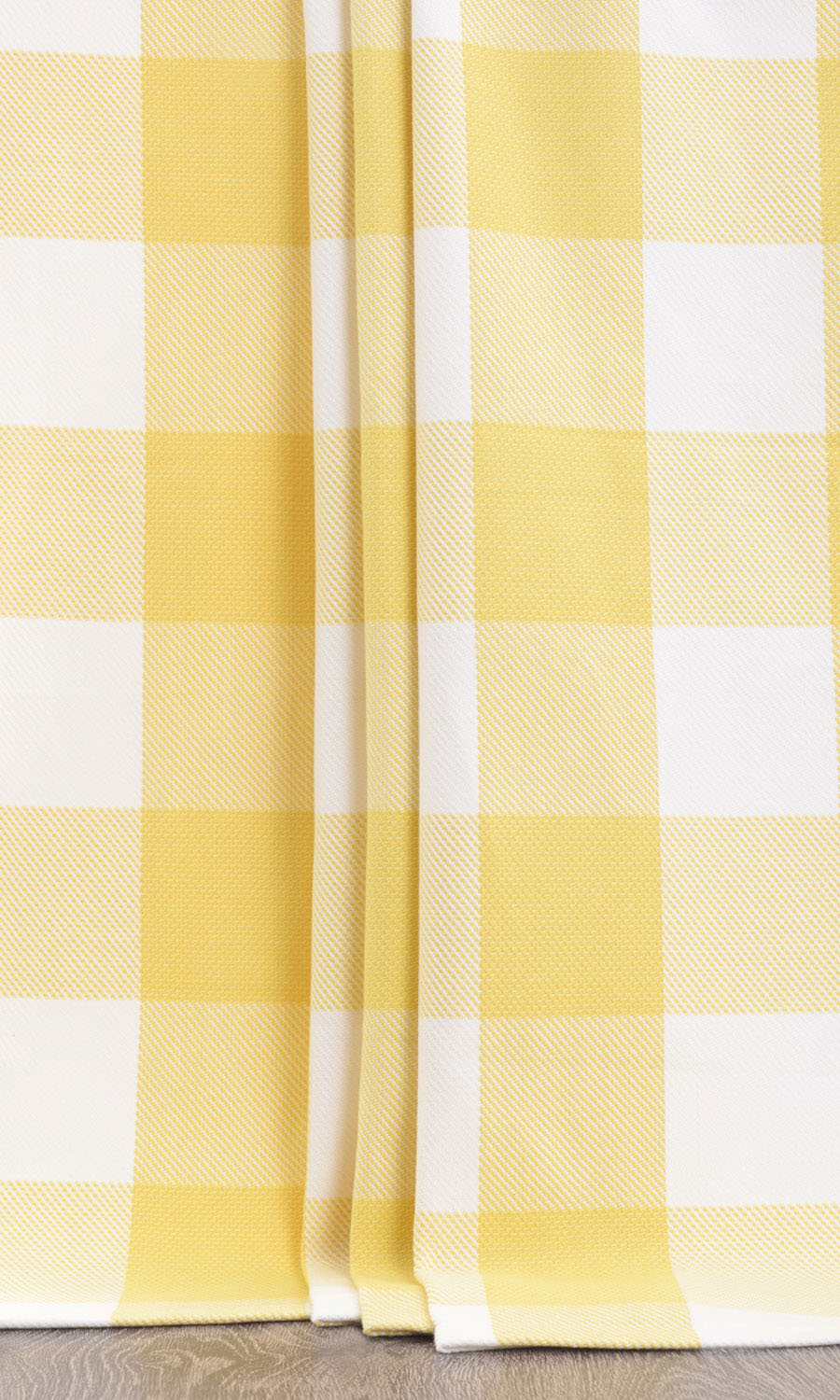 ‘Zafaron’ Buffalo Check Custom Drapes (Lemon Yellow/ White)