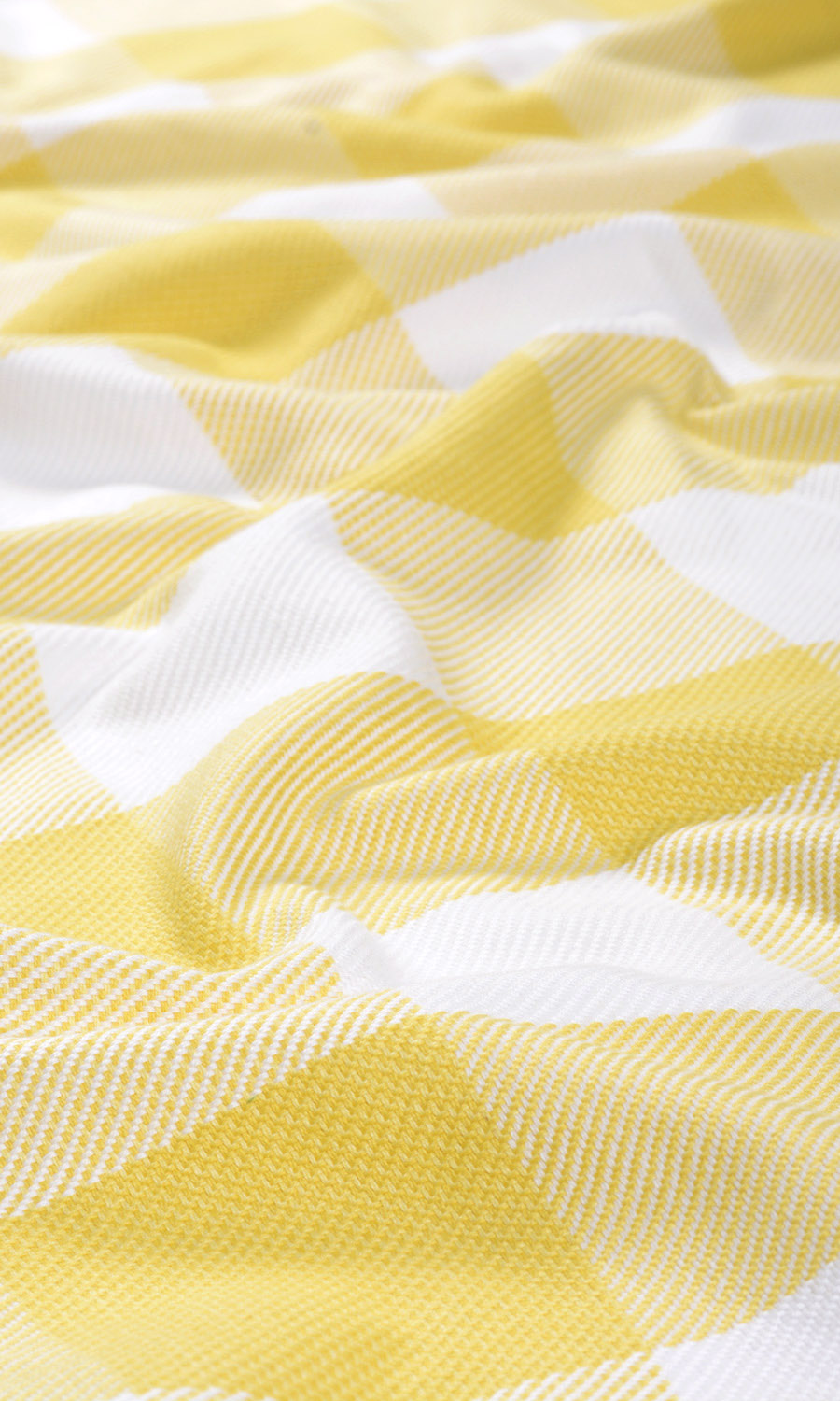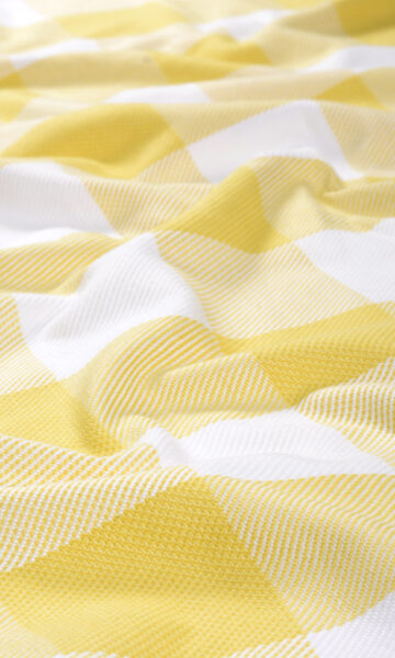 If a happy day was to be translated into fabric, it would be something like the Zafaron for sure. This 100% pure cotton fabric has bold buffalo checks in lemon yellow and pure white. The intersecting blocks look a paler yellow from afar. Bright and cheerful, this one will always keep your interiors feeling upbeat.
