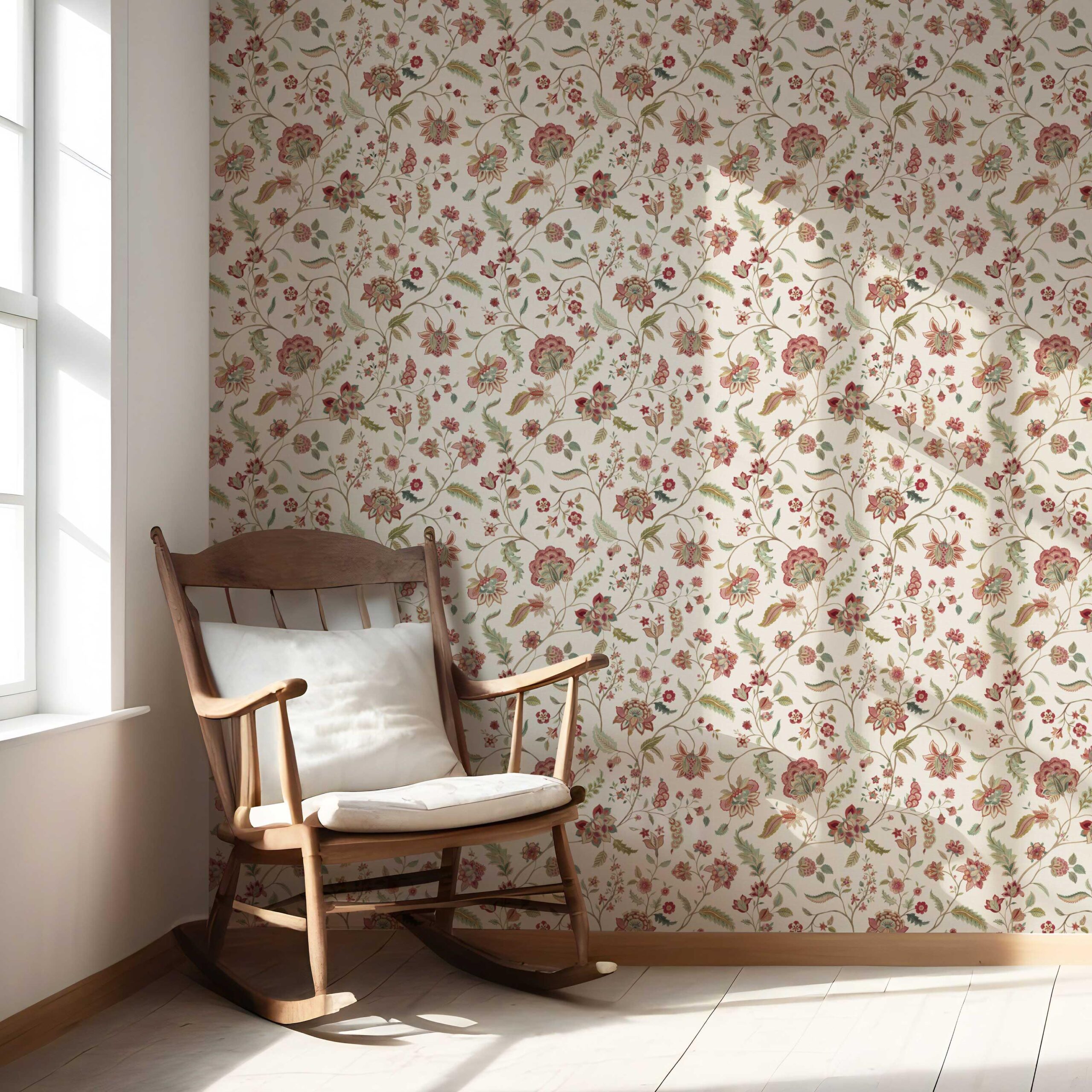 NON-PASTED: ‘Zanbaq’ is an unpasted wallpaper installed by applying adhesive paste (not provided by us, but easy to source) to the wall. While peel-and-stick papers do not leave much room to change the paper’s position once you start applying it, the traditional, non-pasted application is more forgiving, allowing for better positioning when matching patterns.