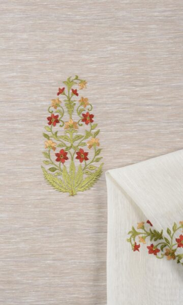 A showstopper paisley. Floral elegance in graceful colors and nimble embroidery merge with paisley to make a jaw-dropping feat. Zephania will veritably steal the show, not with fanfare and hullabaloo, but with a soft whisper, a gentle breeze, a silent gaze! Pair with solid green drapery in a dreamy bedroom or let it shine alone on a sunny patio door – this diva will set the stage ablaze.