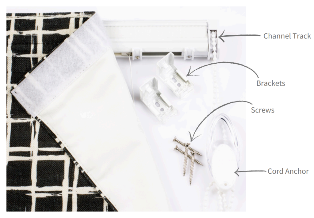 Spiffy Spools’ roman shades are shipped with all the necessary hardware, including: