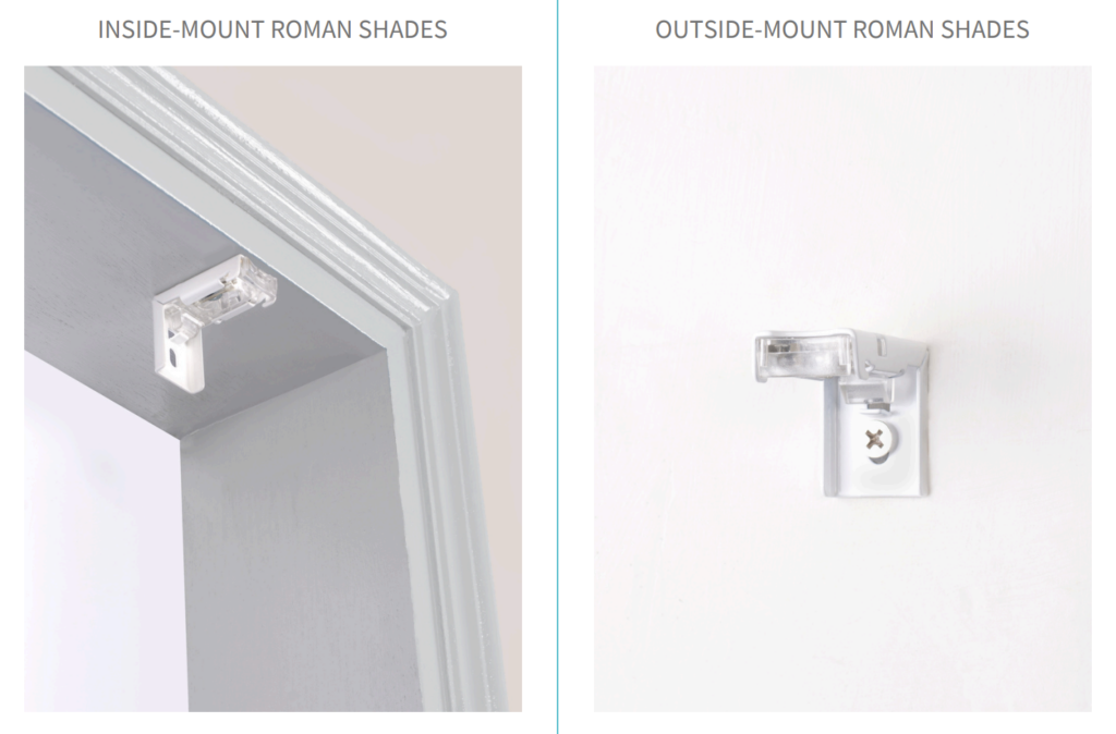 While specifying your order on our site, you’d have indicated if your roman shades are intended for mounting inside or outside the window recess. Please note that the hardware included with your order remains the same irrespective of the mounting style you have selected. The sole distinction in terms of installation is the positioning of the brackets, as seen below.